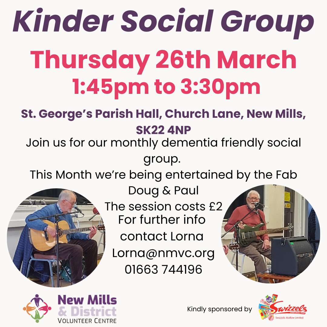 Kinder Social Group is back the last Thursday of the Month at St George’s Parish Hall.