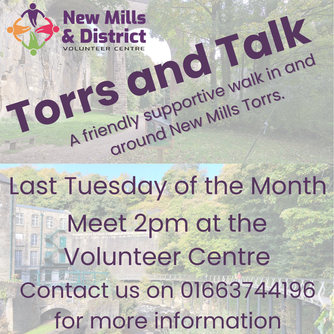 A friendly and supportive walk, in and around New Mills Torrs, no more than 2 miles. We walk at a gentle pace, although do be aware there is a steep path into and out of the Torrs.
