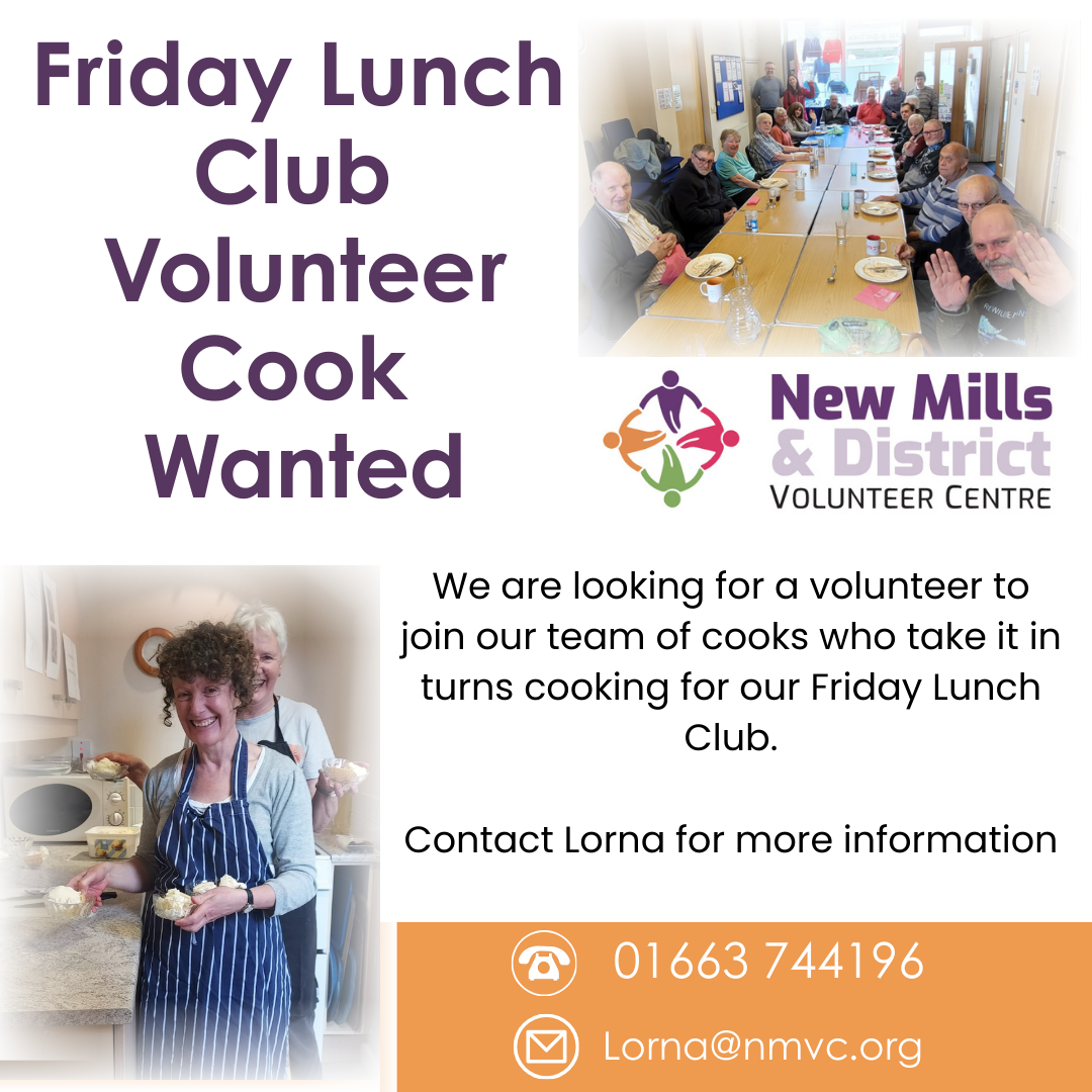 We are looking for a volunteer to join our team of cooks for our Friday Lunch Club.